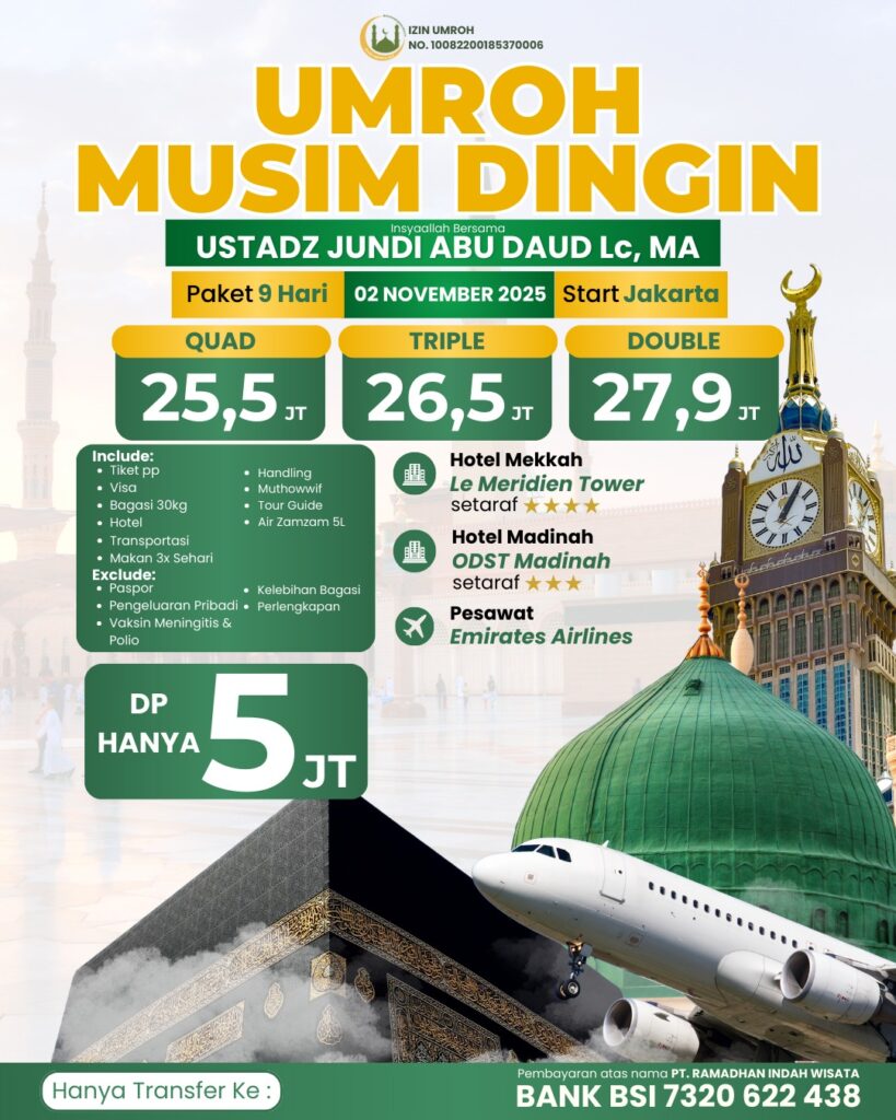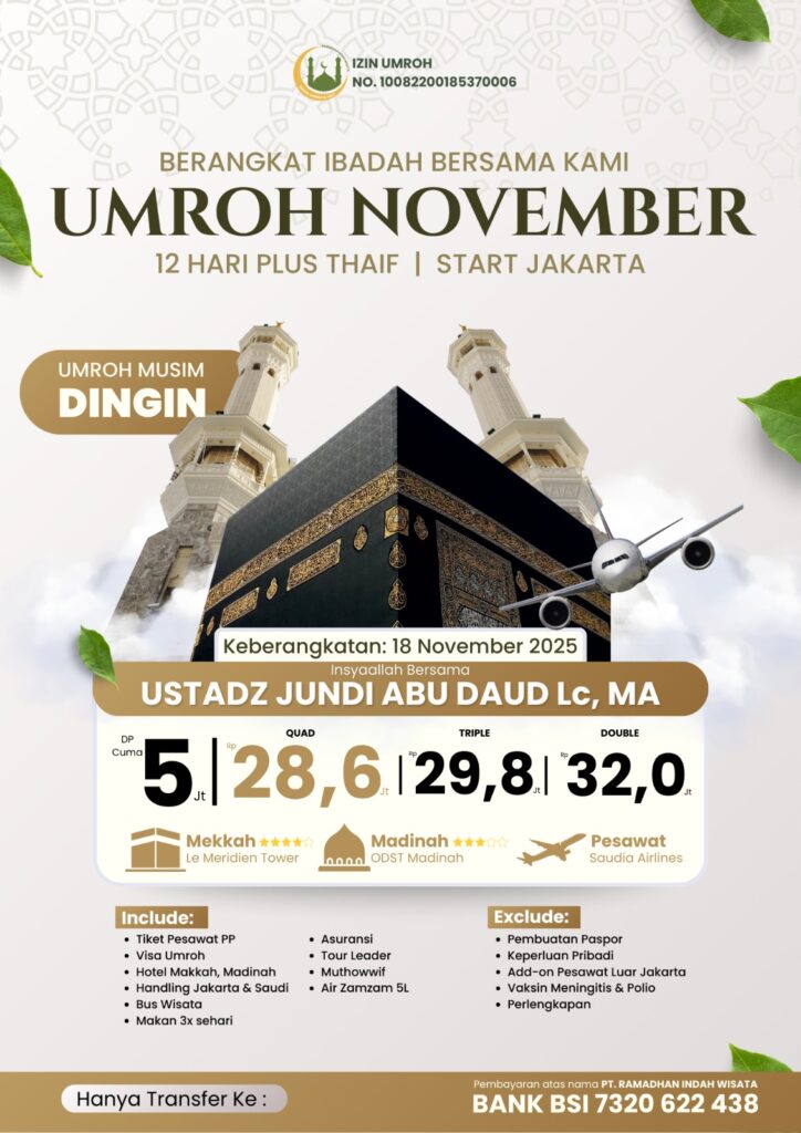 Layanan Kami Ramadhan Indah Tour“Mari Wujudkan Niat Suci Anda Bersama Ramadhan Indah Tour. Ibadah Tenang, Hati Pun Lapang.” Mengapa Ramadhan Indah Tour? Tim pembimbing berpengalaman & bersertifikat Harga transparan, tanpa biaya tersembunyi Pendampingan selama perjalanan 24 jam Legalitas resmi dan terdaftar di Kemenag RI